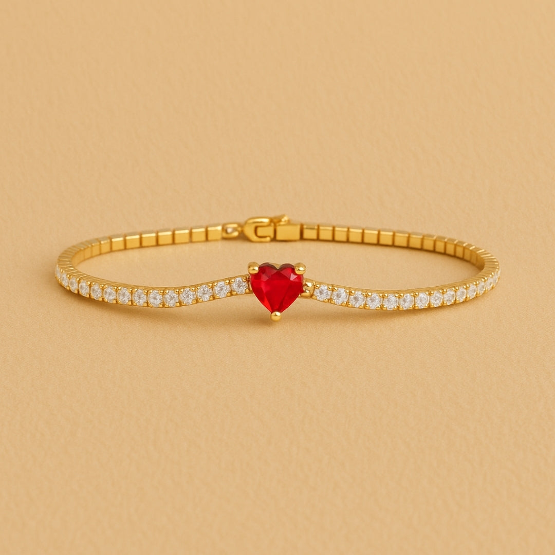 Like a heartbeat on a monitor, the fluid wave links and crimson enamel heart celebrate the highs and lows of 30 shared years. Adjustable slider clasp fits 6-8 in wrists; colour-fast enamel won’t chip with daily wear. Ideal “thinking-of-you” gift for daughters and best friends.