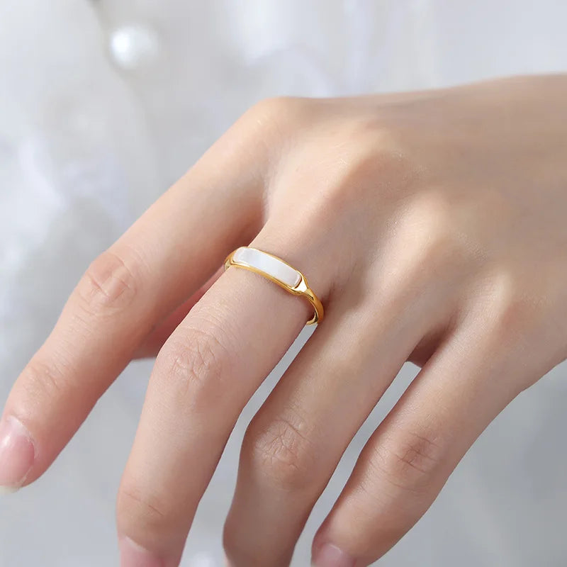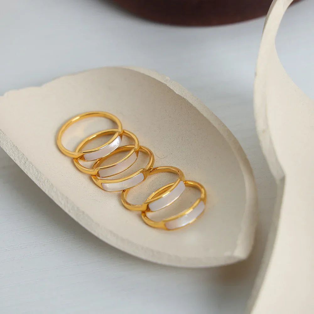 Inspired by the effortless elegance of the ocean, the Shell Accent Toroidal Ring by WAN blends timeless natural beauty with sleek contemporary style. This unique piece features a smooth toroidal shape with a subtle shell inlay, all wrapped in radiant 18K gold plating. Perfect for daily elegance or special occasions, it's a standout accessory that whispers luxury.