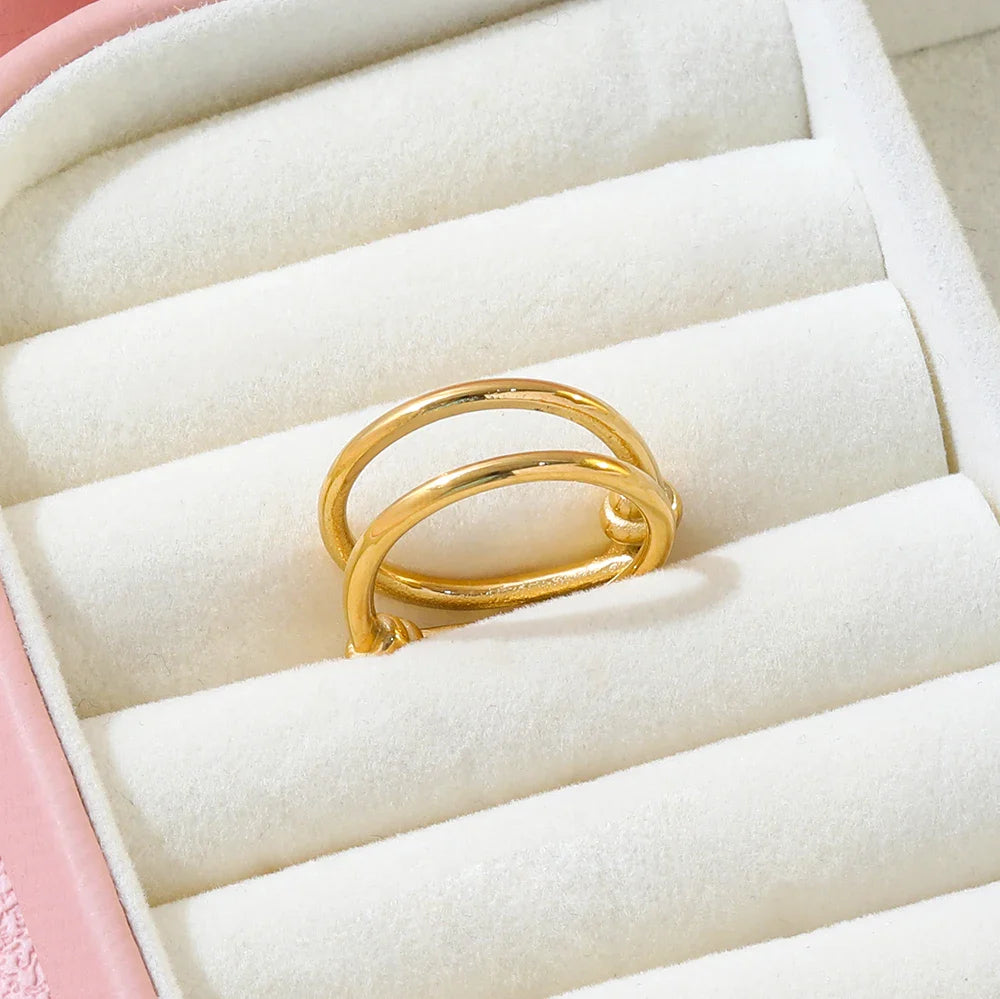 A touch of brilliance in a bold, modern form. The Astra Ring blends clean geometric design with the subtle sparkle of zircon stones, wrapped in a radiant 18K gold finish. Unisex and versatile, this eternity band is made to turn heads—day or night.