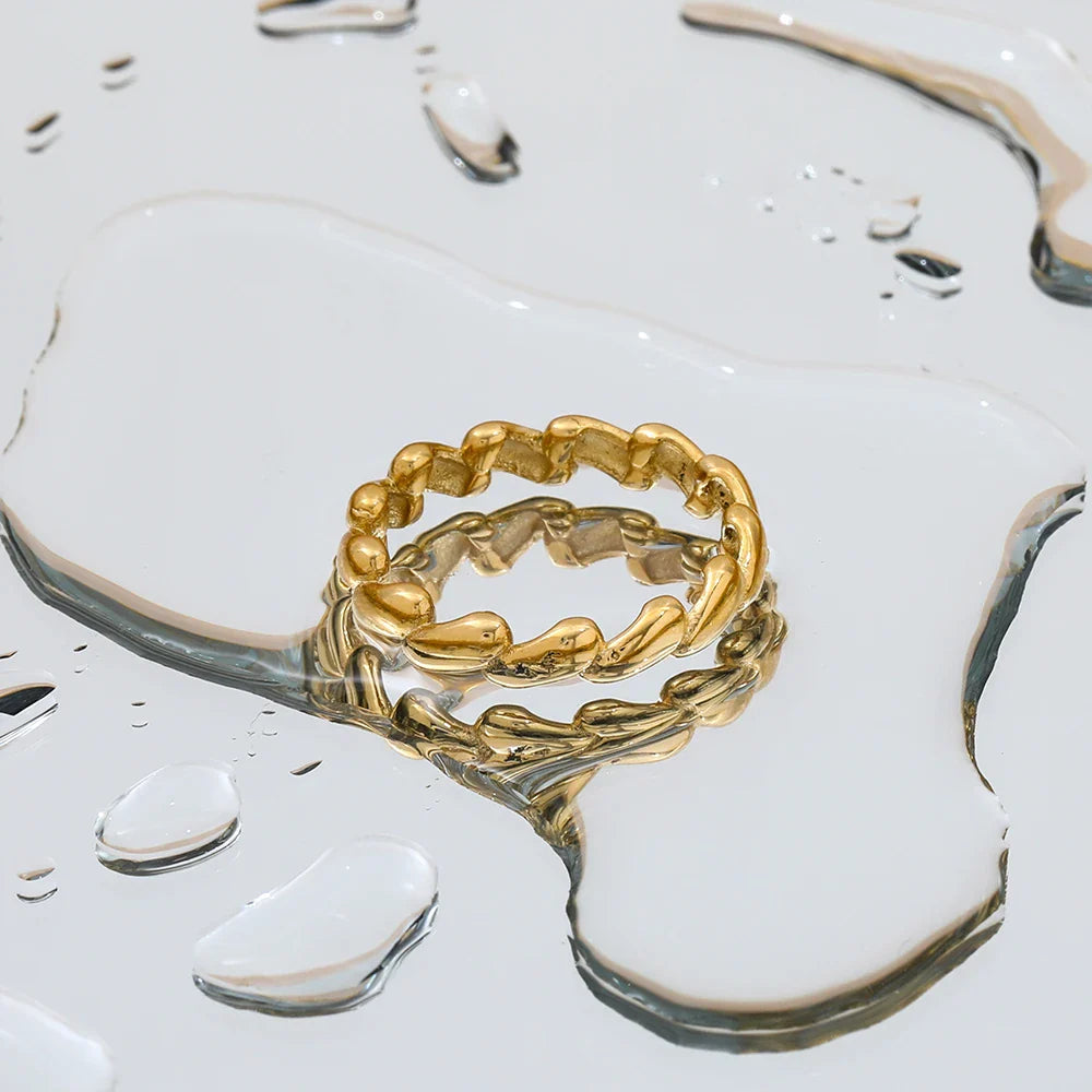 Delicate yet defined, The Soleil Mini is a dainty eternity band made to glow with you. Its geometric design and soft gold plating bring a hint of polish to every moment—stack it, gift it, or let it shine solo.
