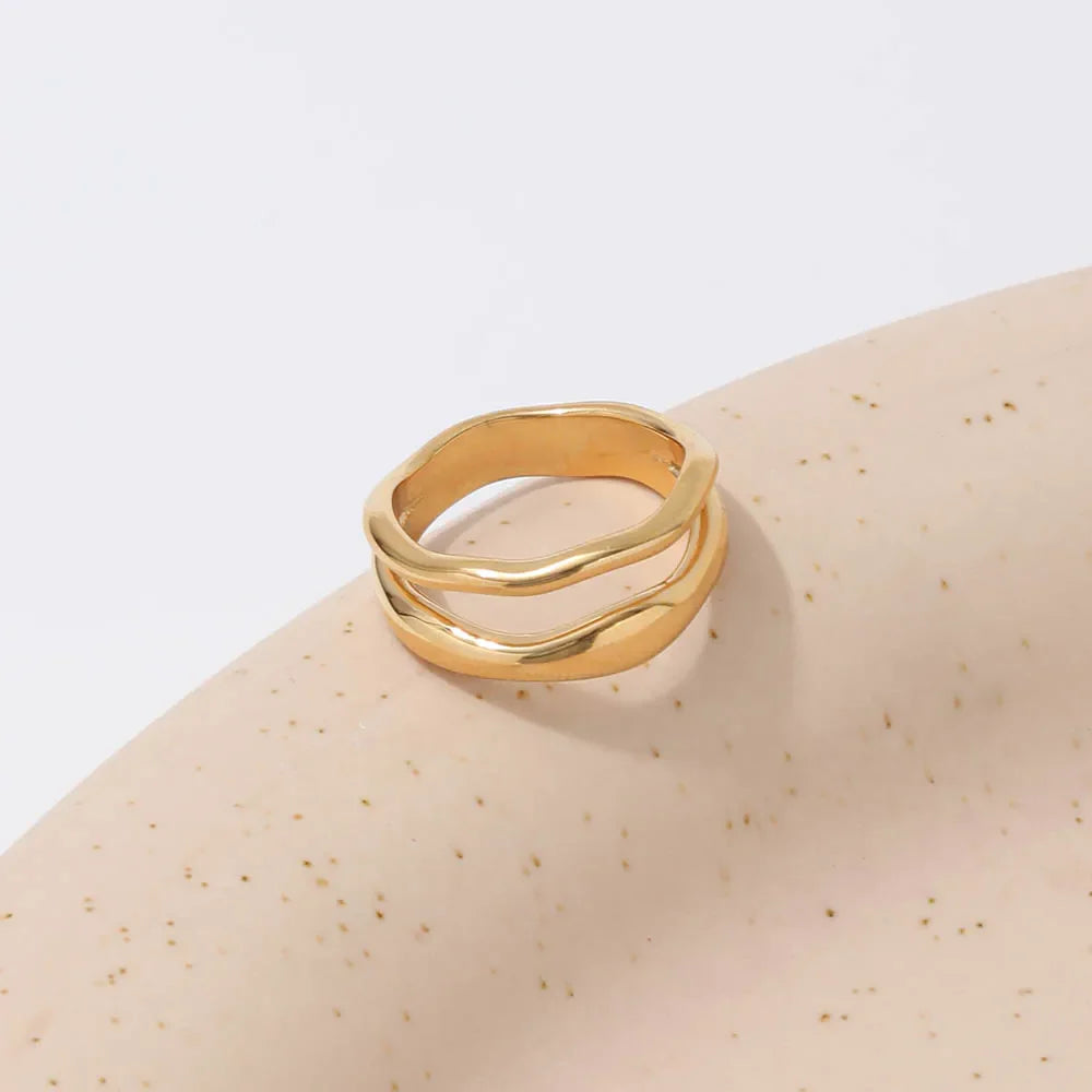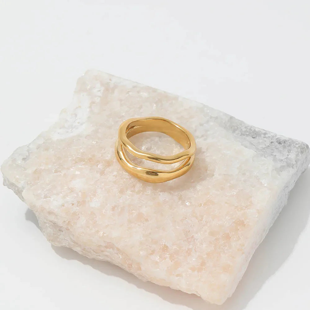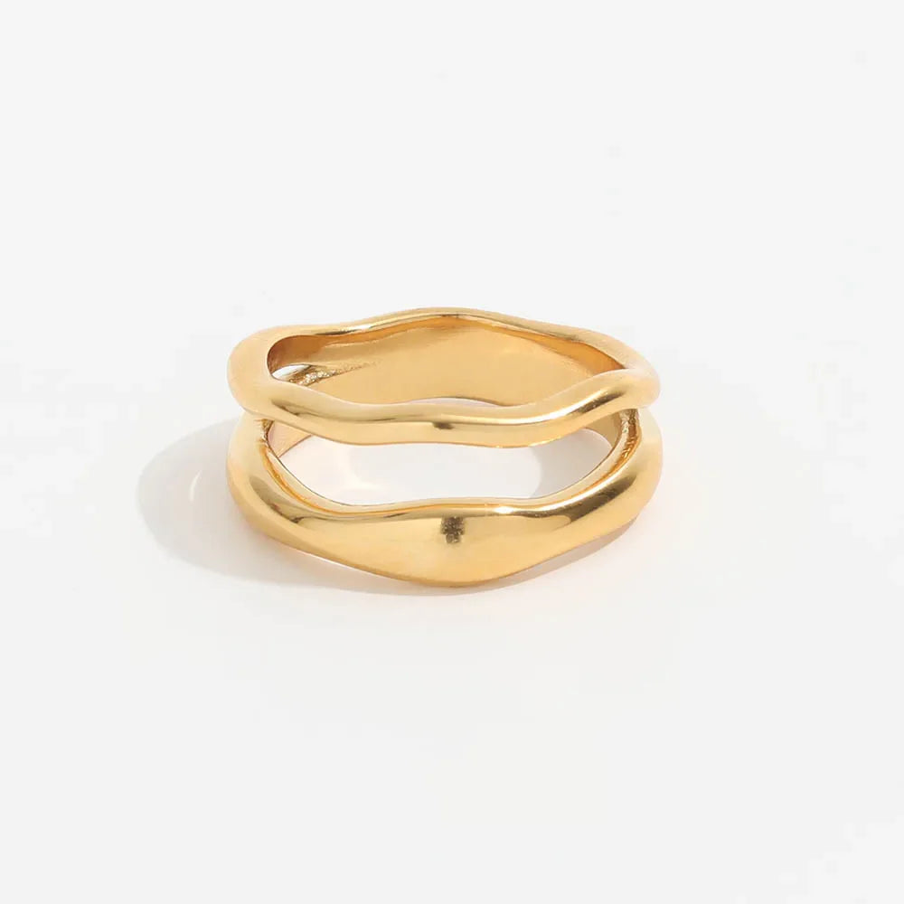 Bold in form, minimal in spirit. The Sora Ring features a clean geometric design with a radiant 18K gold finish—crafted for anyone who values effortless edge. Whether you wear it stacked or solo, this unisex eternity band adds instant polish to your everyday.